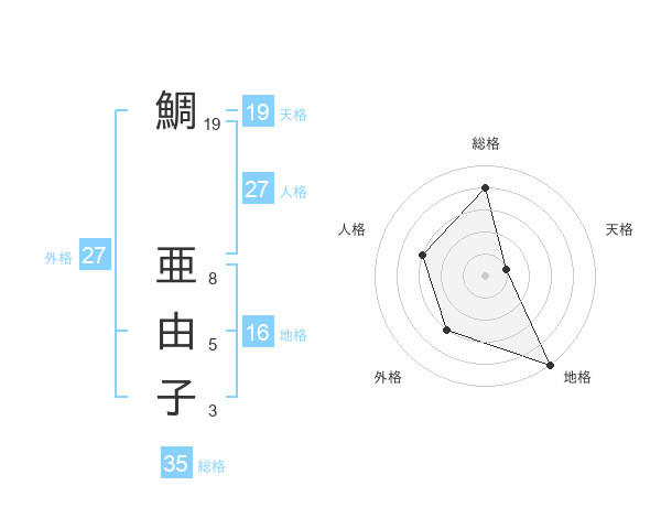 鯛 亜由子さんを姓名の画数から五運を鑑定