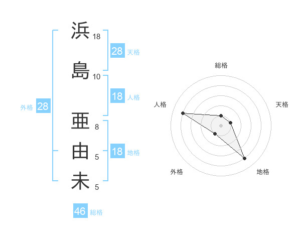 浜島 亜由未さんの天格は28画の1点!