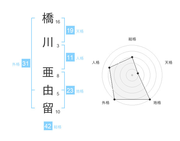 橋川 亜由留さんを姓名の画数から五運を鑑定