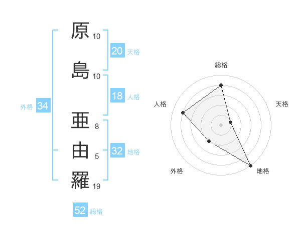 原島 亜由羅さんを姓名の画数から五運を鑑定