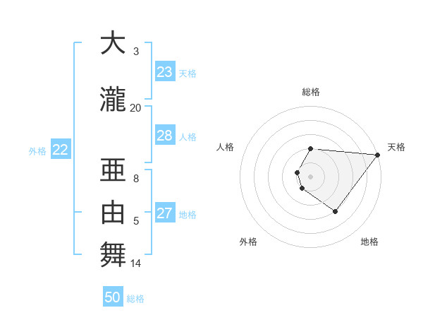 大瀧 亜由舞さんの外格は22画の1点!