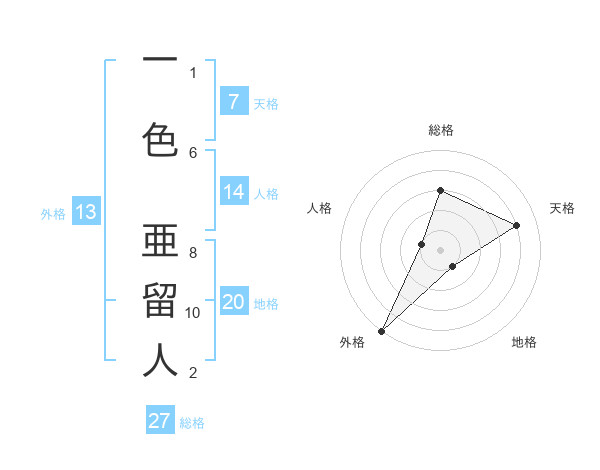 一色 亜留人さんを姓名の画数から五運を鑑定