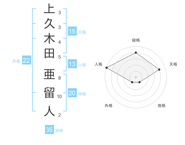 上久木田 亜留人さんを姓名の画数から五運を鑑定