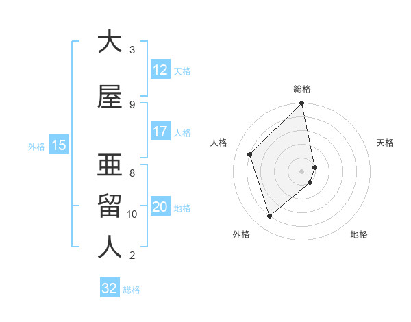 大屋 亜留人さんを姓名の画数から五運を鑑定