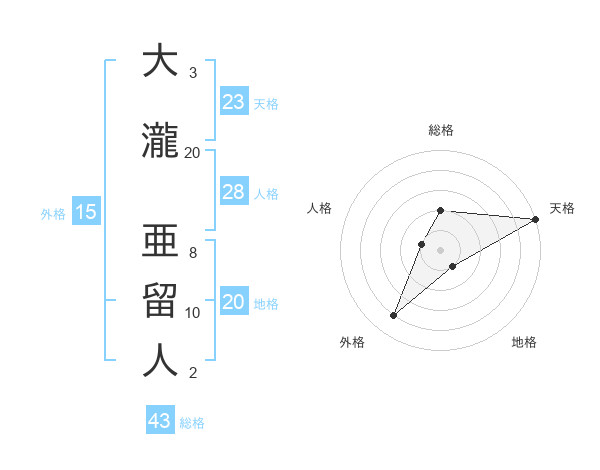 大瀧 亜留人さんを姓名の画数から五運を鑑定