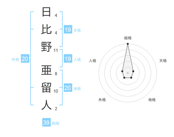 日比野 亜留人さんを姓名の画数から五運を鑑定