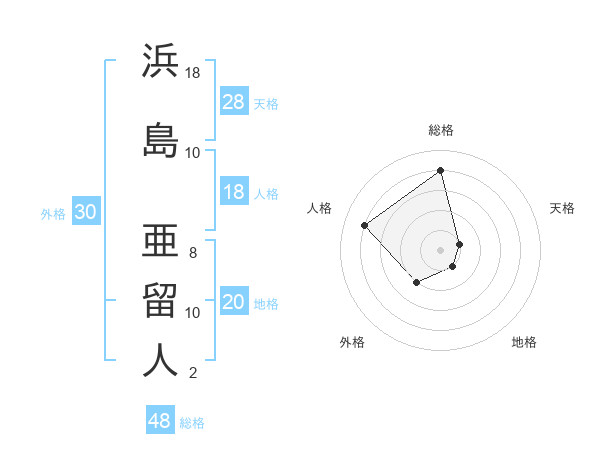 浜島 亜留人さんを姓名の画数から五運を鑑定