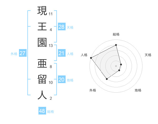 現王園 亜留人さんを姓名の画数から五運を鑑定
