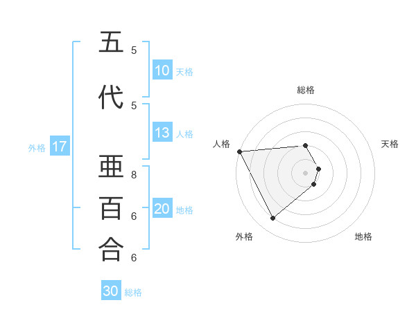 五代 亜百合さんの地格は20画の1点!