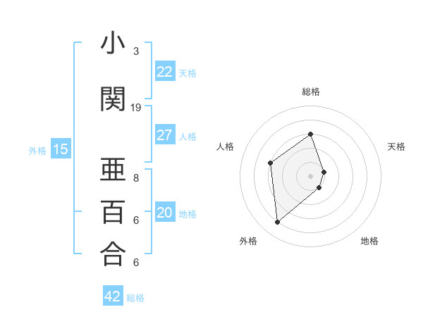 小関 亜百合さんを姓名の画数から五運を鑑定