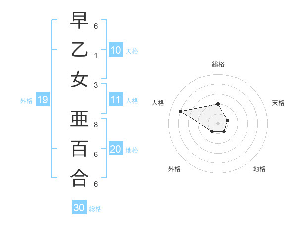 早乙女 亜百合さんを姓名の画数から五運を鑑定
