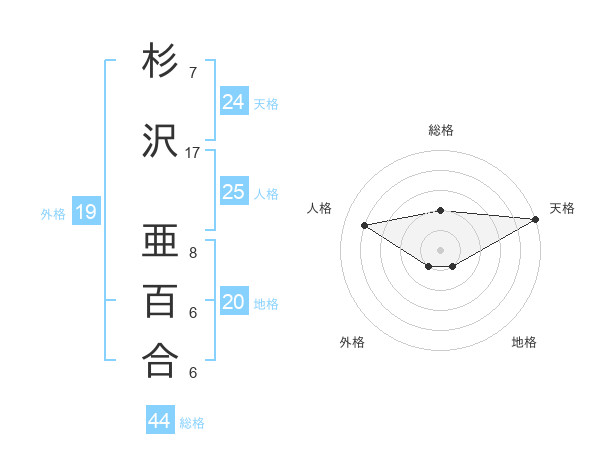 杉沢 亜百合さんの天格は24画の5点!