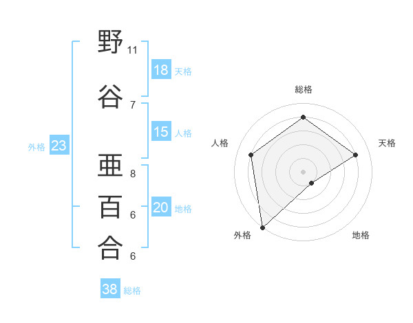 野谷 亜百合さんの外格は23画の5点!
