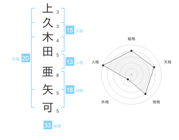 上久木田 亜矢可さんを姓名の画数から五運を鑑定