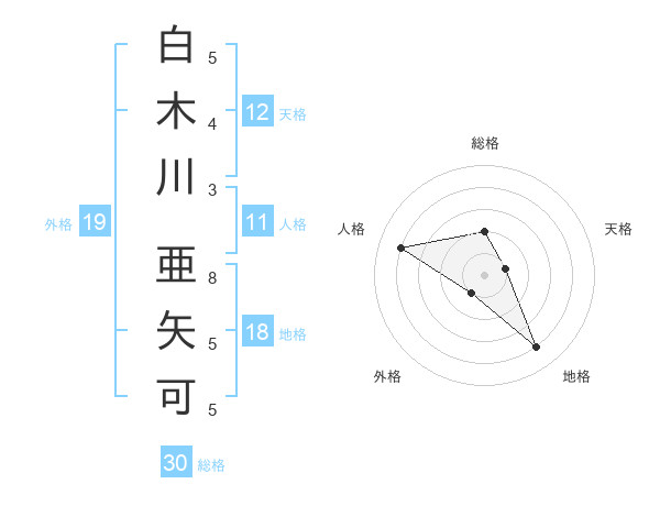 白木川 亜矢可さんを姓名の画数から五運を鑑定