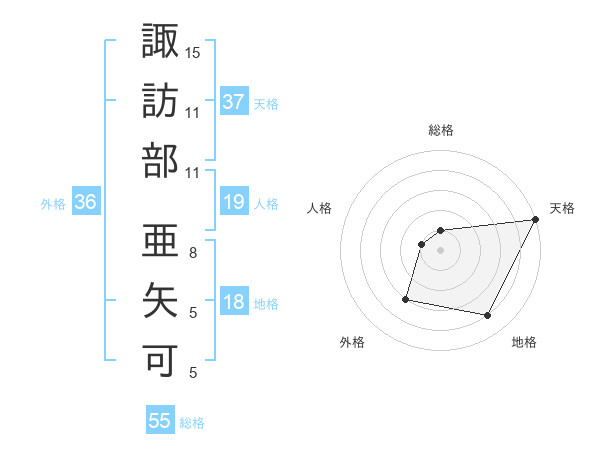 諏訪部 亜矢可さんの天格は37画の5点!
