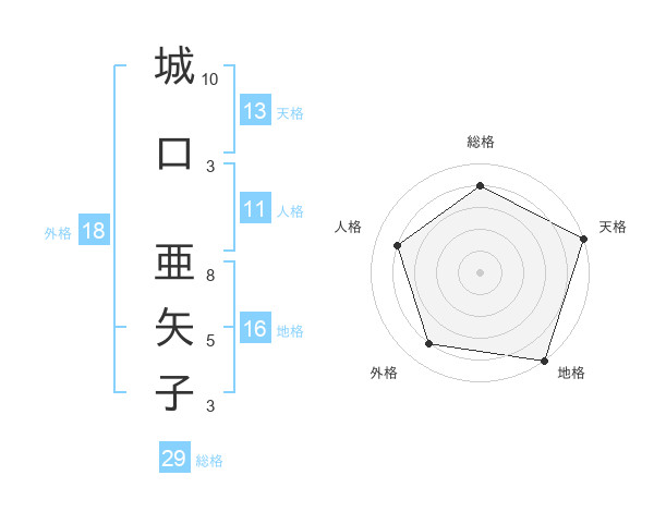 城口 亜矢子さんの総格は29画の4点!