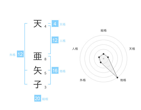 天 亜矢子さんの総格は20画の1点!