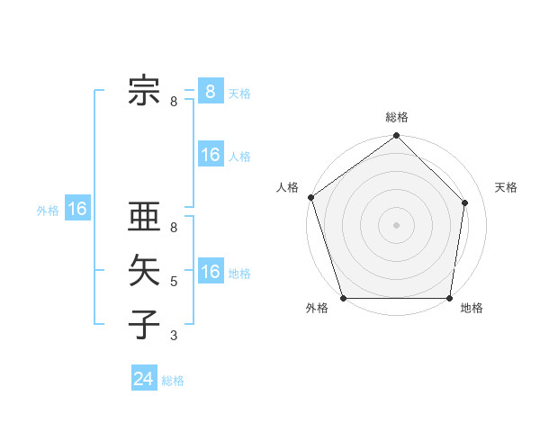 宗 亜矢子さんを姓名の画数から五運を鑑定