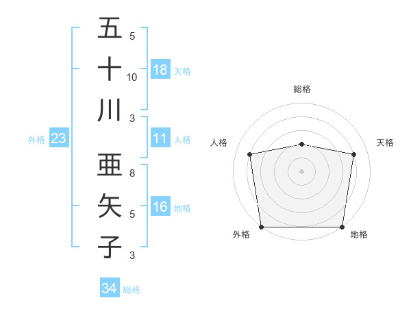 五十川 亜矢子さんを姓名の画数から五運を鑑定