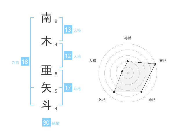 南木 亜矢斗さんの天格は13画の5点!