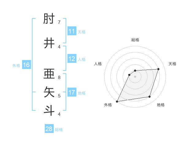 肘井 亜矢斗さんを姓名の画数から五運を鑑定