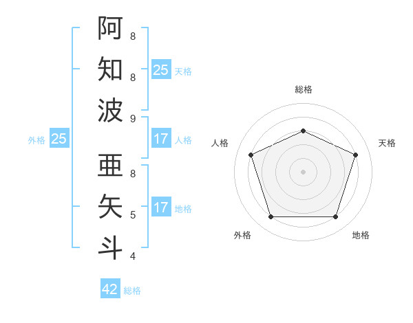 阿知波 亜矢斗さんの総格は42画の3点