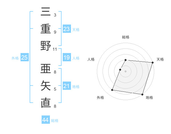 三重野 亜矢直さんを姓名の画数から五運を鑑定