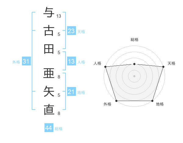 与古田 亜矢直さんを姓名の画数から五運を鑑定