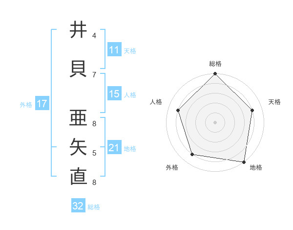 井貝 亜矢直さんの総格は32画の5点!