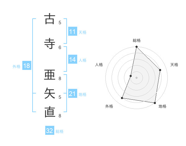 古寺 亜矢直さんの総格は32画の5点!