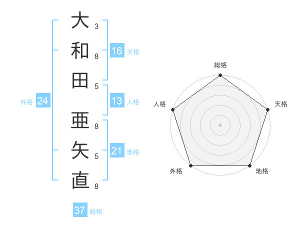 大和田 亜矢直さんを姓名の画数から五運を鑑定