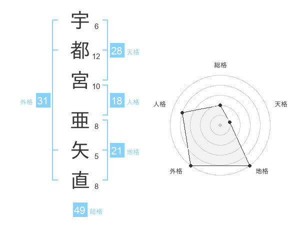宇都宮 亜矢直さんを姓名の画数から五運を鑑定