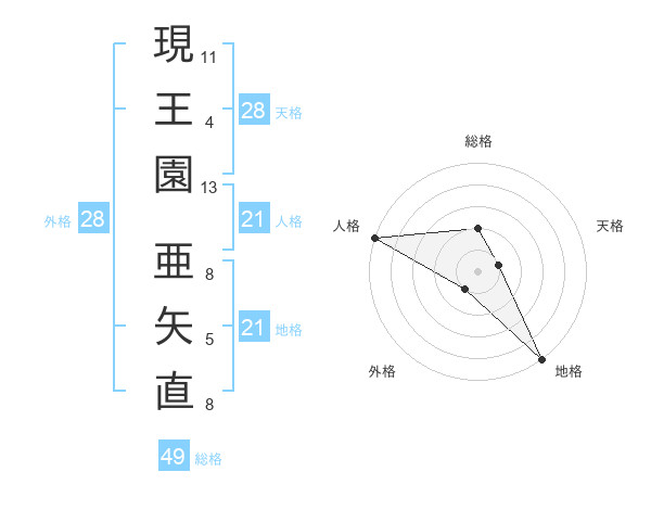 現王園 亜矢直さんを姓名の画数から五運を鑑定