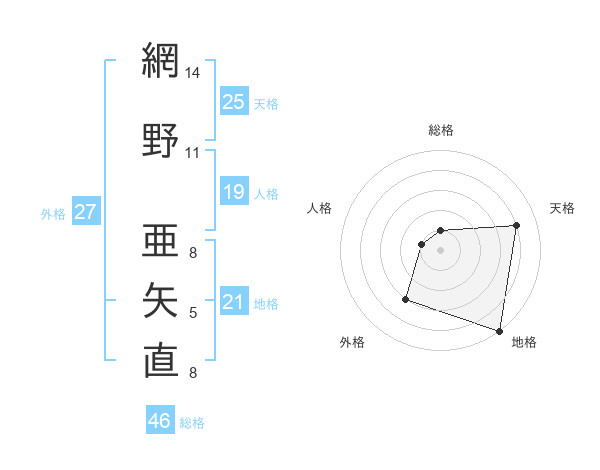 網野 亜矢直さんを姓名の画数から五運を鑑定