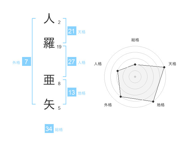 人羅 亜矢さんを姓名の画数から五運を鑑定