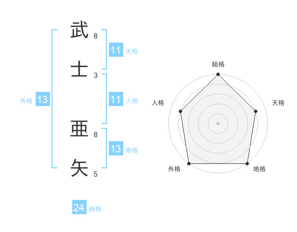 武士 亜矢さんを姓名の画数から五運を鑑定