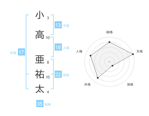 小高 亜祐太さんの総格は35画の4点!