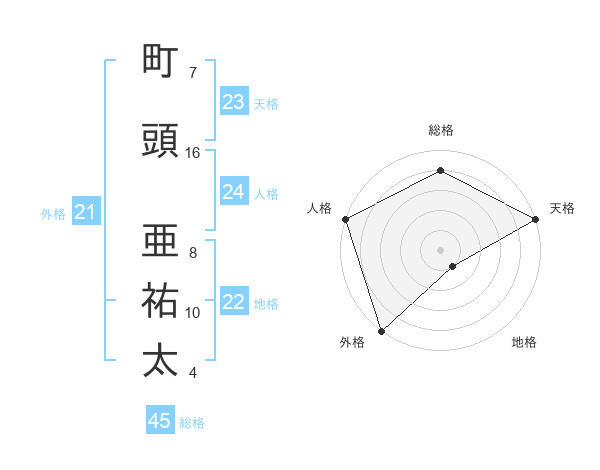 町頭 亜祐太さんの総格は45画の4点!