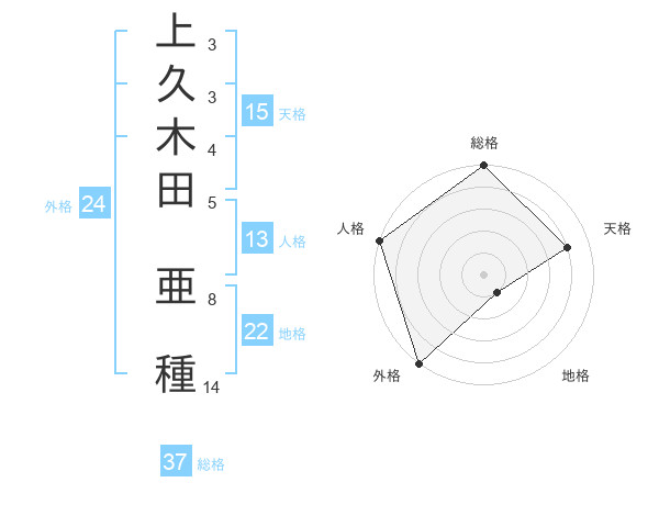 上久木田 亜種さんを姓名の画数から五運を鑑定