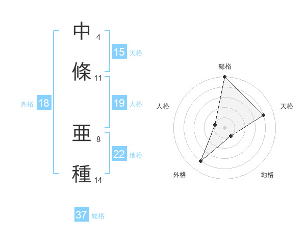 中條 亜種さんの総格は37画の5点!
