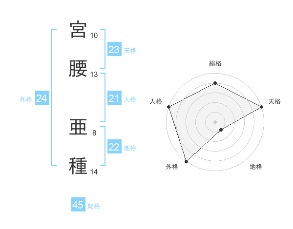 宮腰 亜種さんを姓名の画数から五運を鑑定