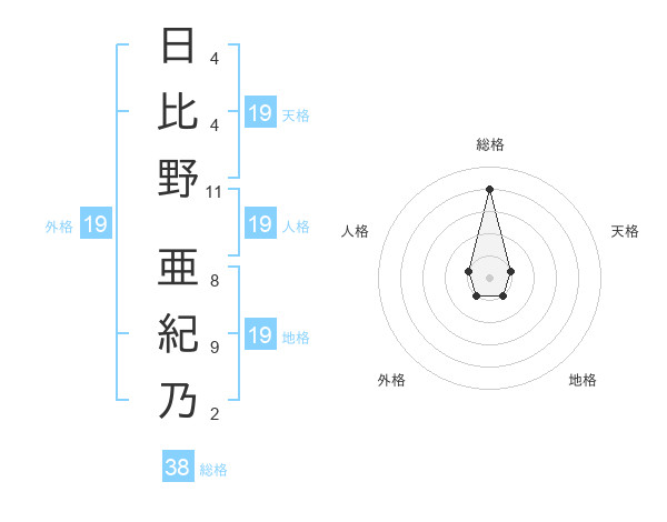 日比野 亜紀乃さんの総格は38画の4点!