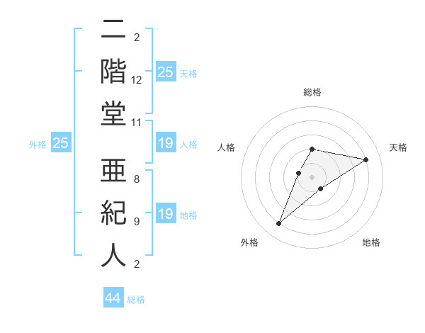 二階堂 亜紀人さんの天格は25画の4点!
