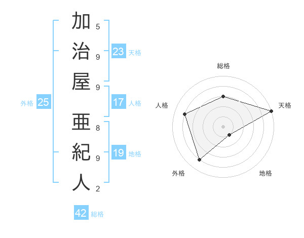 加治屋 亜紀人さんを姓名の画数から五運を鑑定