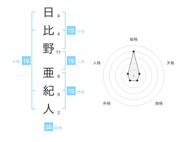 日比野 亜紀人さんを姓名の画数から五運を鑑定