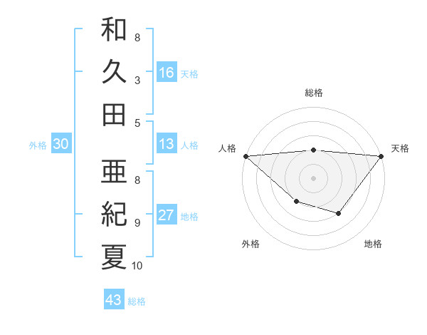 和久田 亜紀夏さんを姓名の画数から五運を鑑定