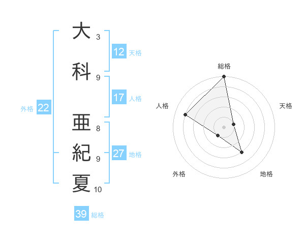 大科 亜紀夏さんを姓名の画数から五運を鑑定