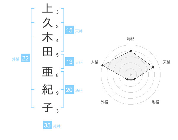 上久木田 亜紀子さんの総格は35画の4点!
