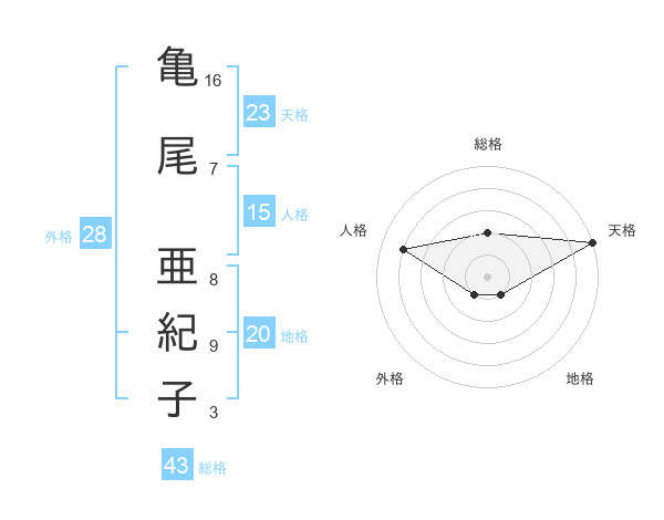 亀尾 亜紀子さんを姓名の画数から五運を鑑定